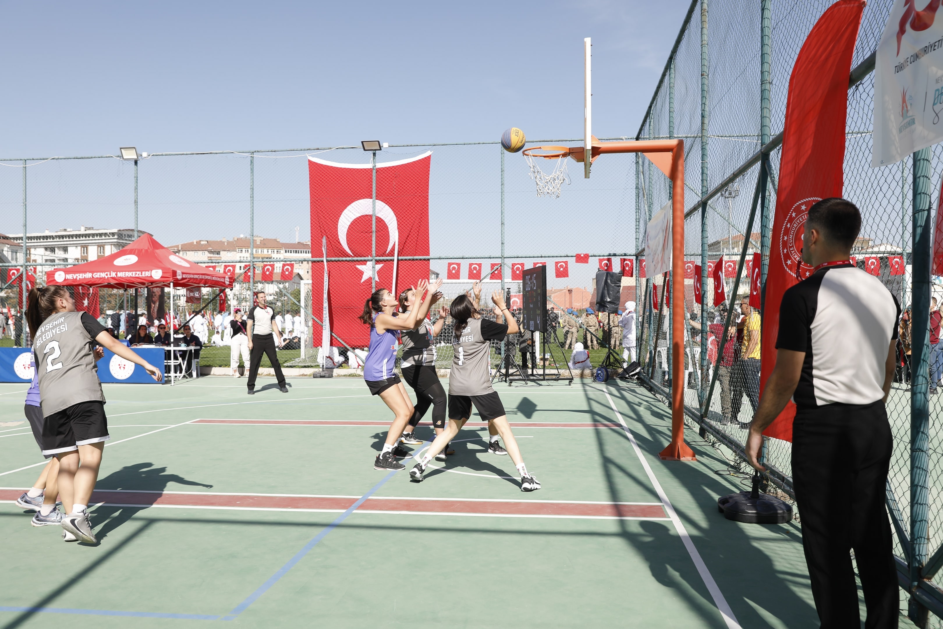 Nevşehir Belediyesi Gençlik ve Spor Hizmetleri Müdürlüğü ve Nevşehir Gençlik ve Spor İl Müdürlüğü tarafından Türkiye Cumhuriyeti’nin 100. Yılı dolayısıyla düzenlenen “3x3 Sokak Basketbolu Turnuvası” sona erdi. Turnuvada dereceye giren takım ve sporculara ödülleri düzenlenen törenle verildi.