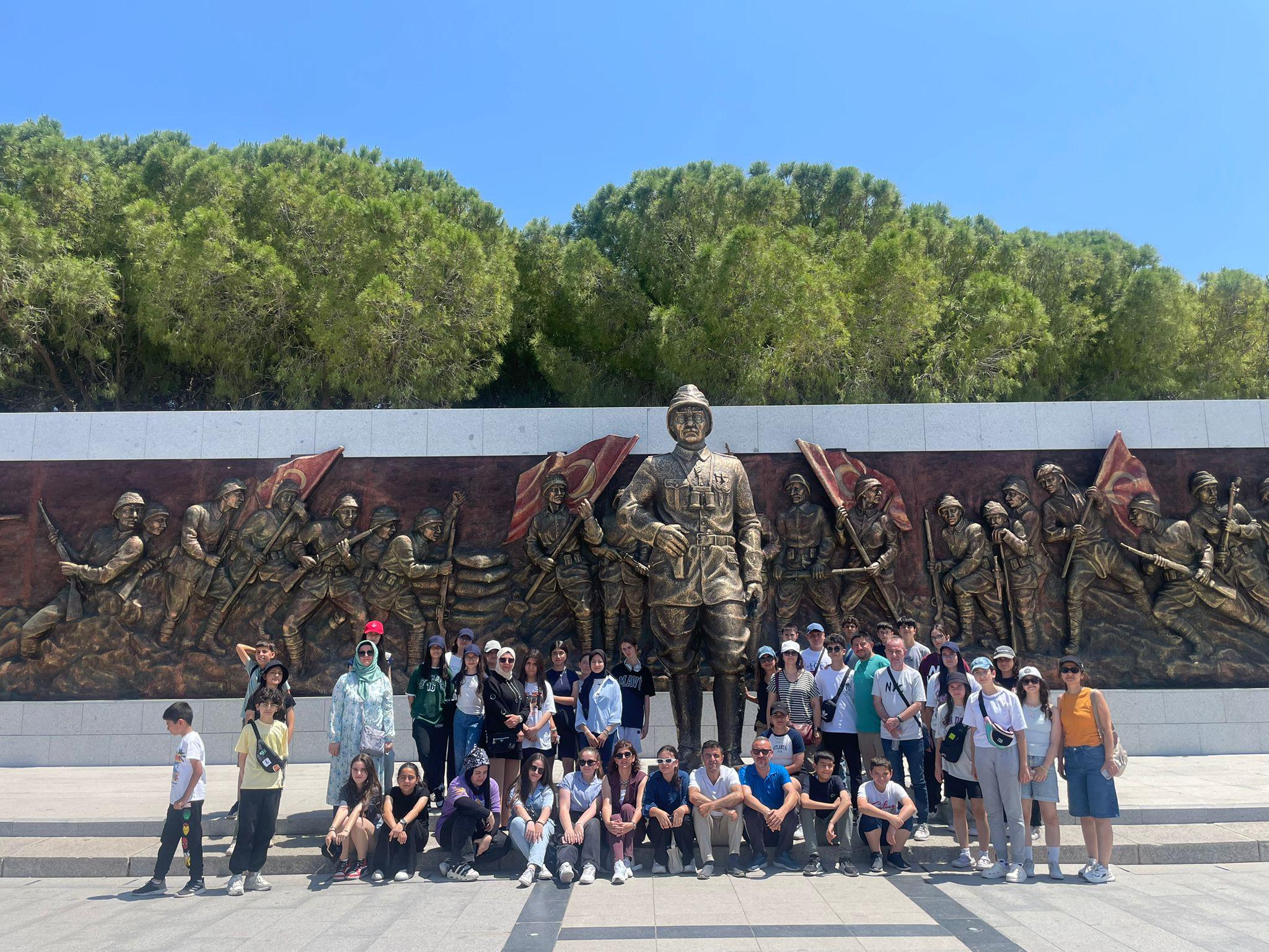 ”Aile ve Oyun” temasıyla düzenlenen “Dönem Sonu Kültür, Sanat ve Spor Faaliyetleri Haftası” kapsamında Gazi Osman Paşa İmam Hatip Ortaokulu yönetici, öğretmen ve 6, 7, 8. sınıf öğrencileri; tarihin en önemli dönemeçlerinden biri olan Çanakkale’yi ve Bursa’yı kapsayan gezi gerçekleştirdiler. Öğrenciler, hem tarihi ve kültürel değerleri yerinde tanıma fırsatı buldu hem de tarih bilincini geliştirerek milli mücadele ruhunu yerinde yaşadılar. Köklü bir maziye sahip şanlı bir milletin evlatları olmanın gururunu bir kez daha yaşayan öğrenciler vatan uğruna canlarını feda eden kahramanları rahmet, minnet ve şükranla andılar.