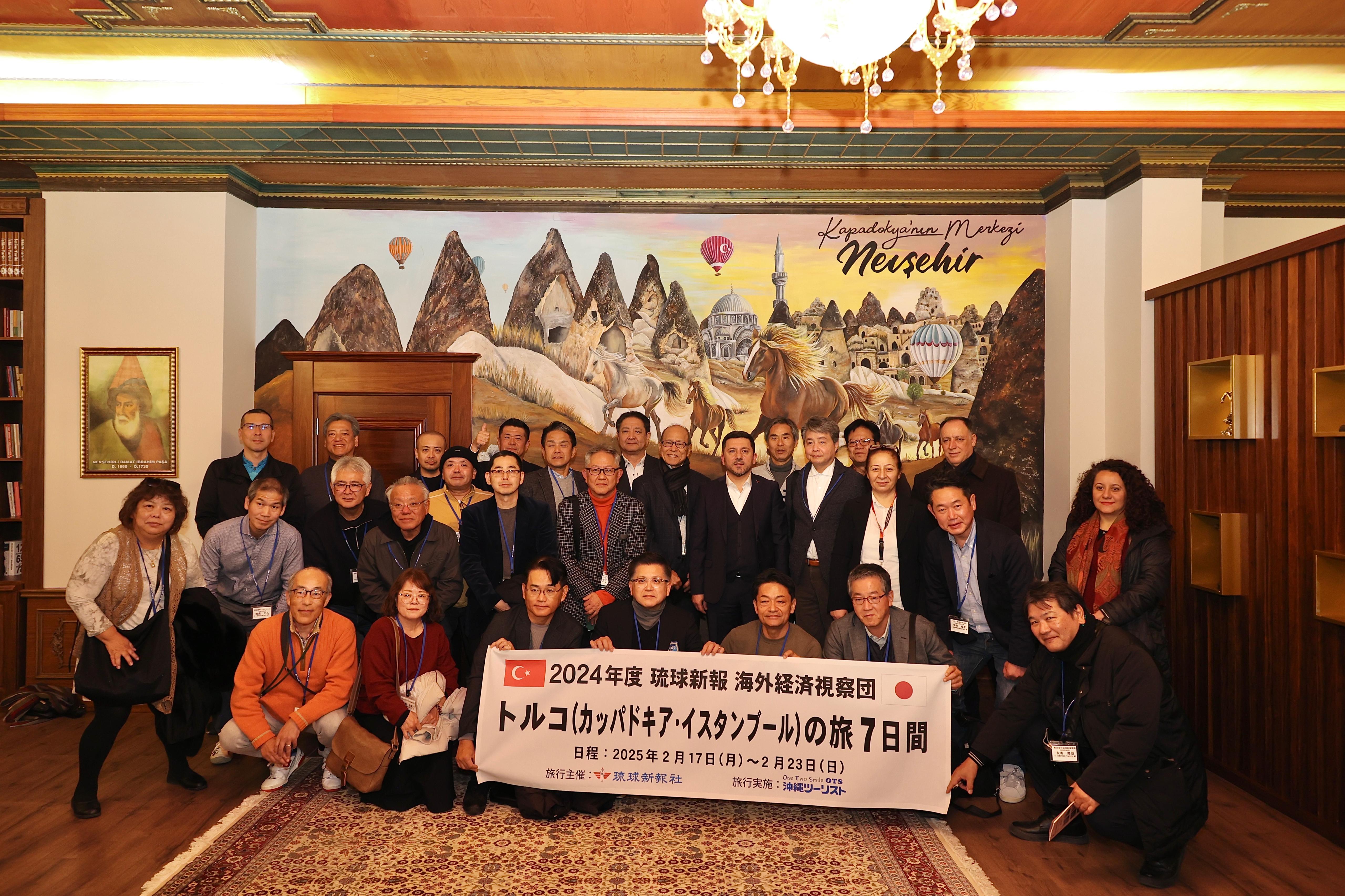 Japonya’nın Okinawa Bölgesinden Ticaret ve Sanayi odası yönetim kurulu üyeleri ve iş adamlarından oluşan 35 kişilik heyet ekonomi araştırma turunun bir parçası olarak Nevşehir Belediye Başkanı Rasim Arı’yı makamında ziyaret etti.