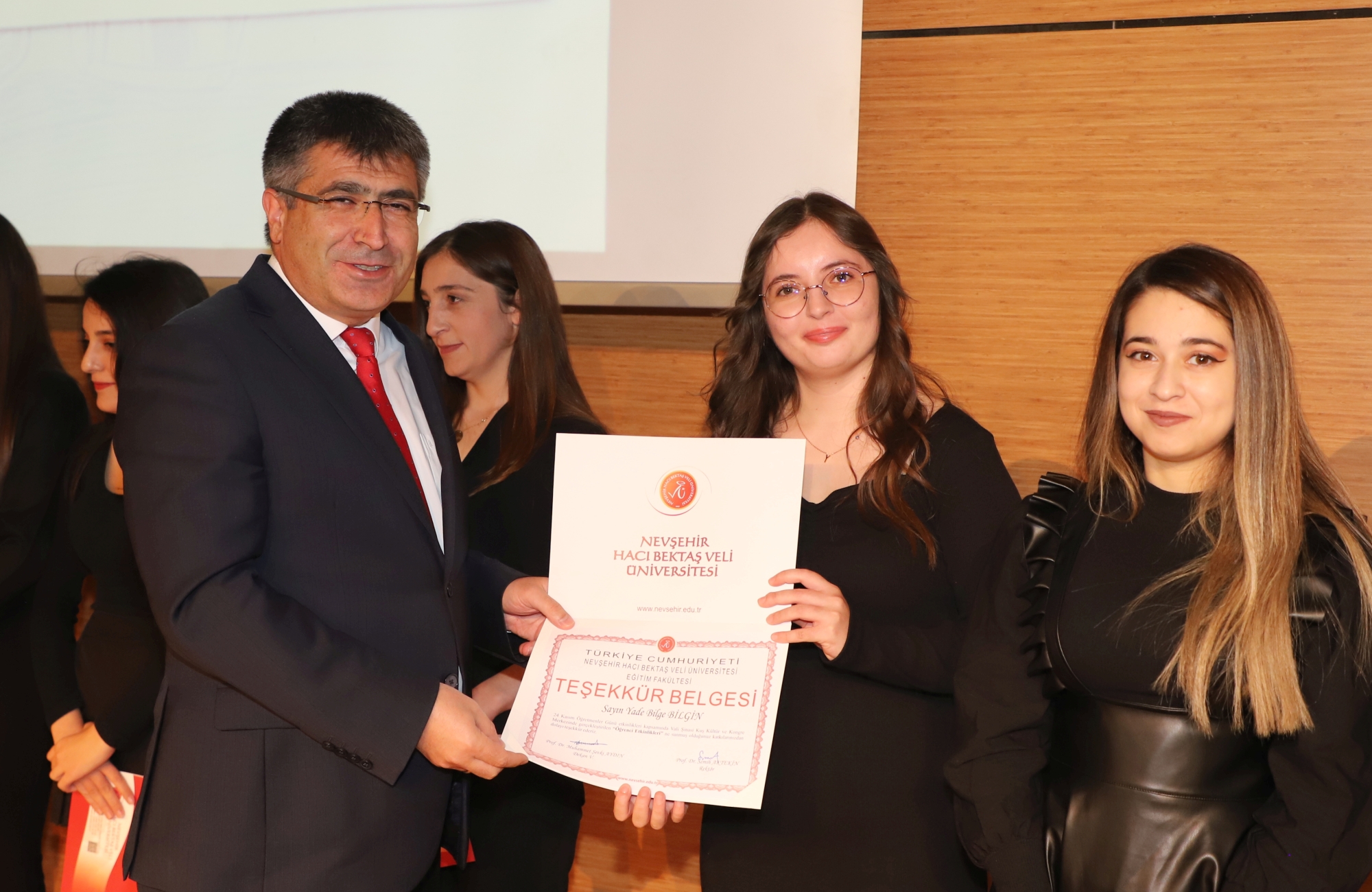 Program sonunda öğretmen adayı öğrencileri böyle anlamlı bir günde sergilemiş oldukları performanslarından dolayı tebrik eden Rektör Prof. Dr. Semih Aktekin, kendilerine teşekkür belgesi verdi.