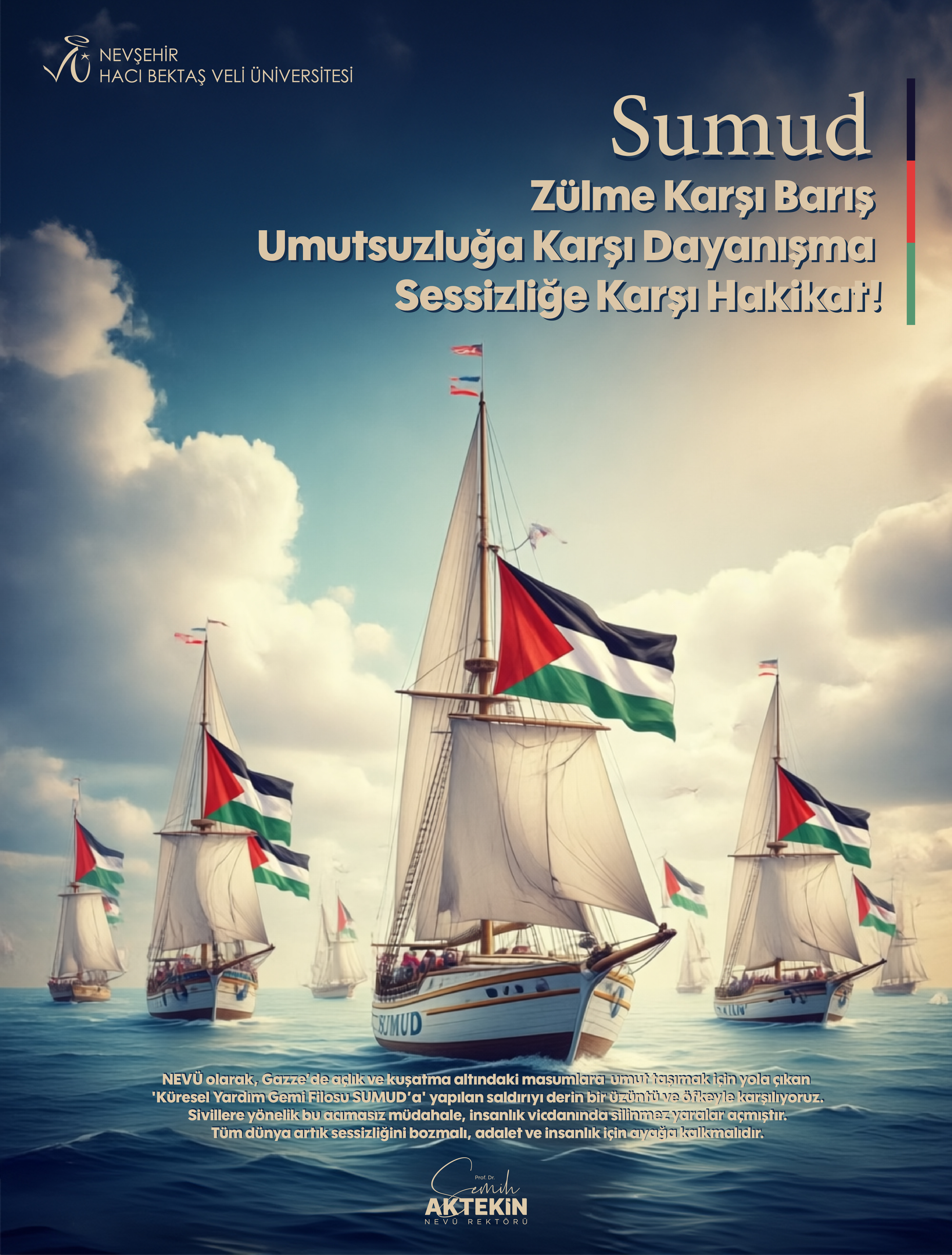 Nevşehir Hacı Bektaş Veli Üniversitesi (NEVÜ) Rektörü Prof. Dr. Semih Aktekin, insani yardım taşıyan ve İsrail tarafından saldırıya uğrayan Sumud Filosu hakkında bir açıklama yaptı. Rektör Aktekin, Sumud filosunun insani yardım malzemeleri taşıyarak uluslararası hukuk çerçevesinde meşru bir hakkı kullandığını ve Gazze'deki insani krize dikkat çekmeyi amaçladığını vurguladı.