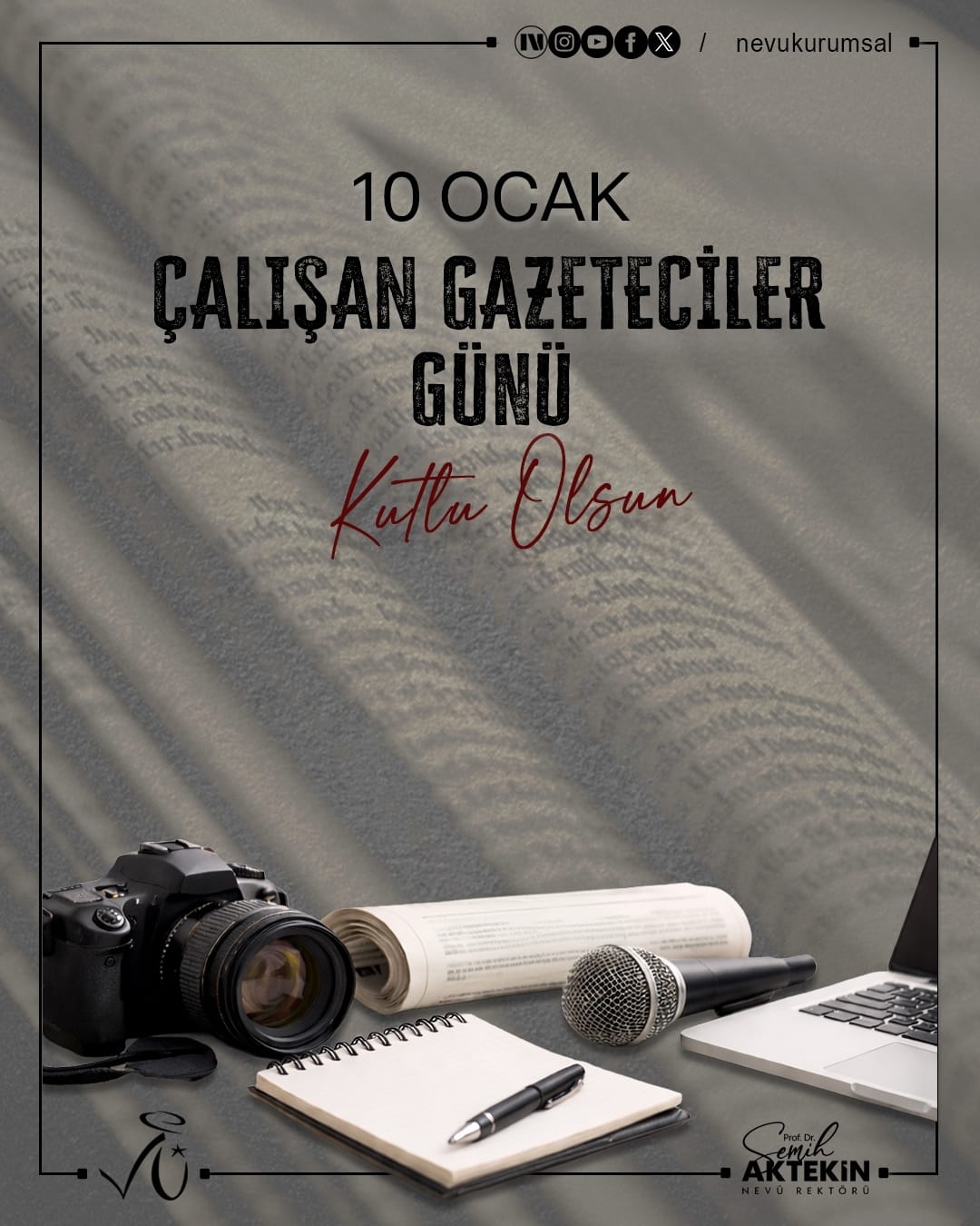 Nevşehir Hacı Bektaş Veli Üniversitesi (NEVÜ) Rektörü Prof. Dr. Semih Aktekin, 10 Ocak Çalışan Gazeteciler Günü dolayısıyla birer mesaj yayımladı.