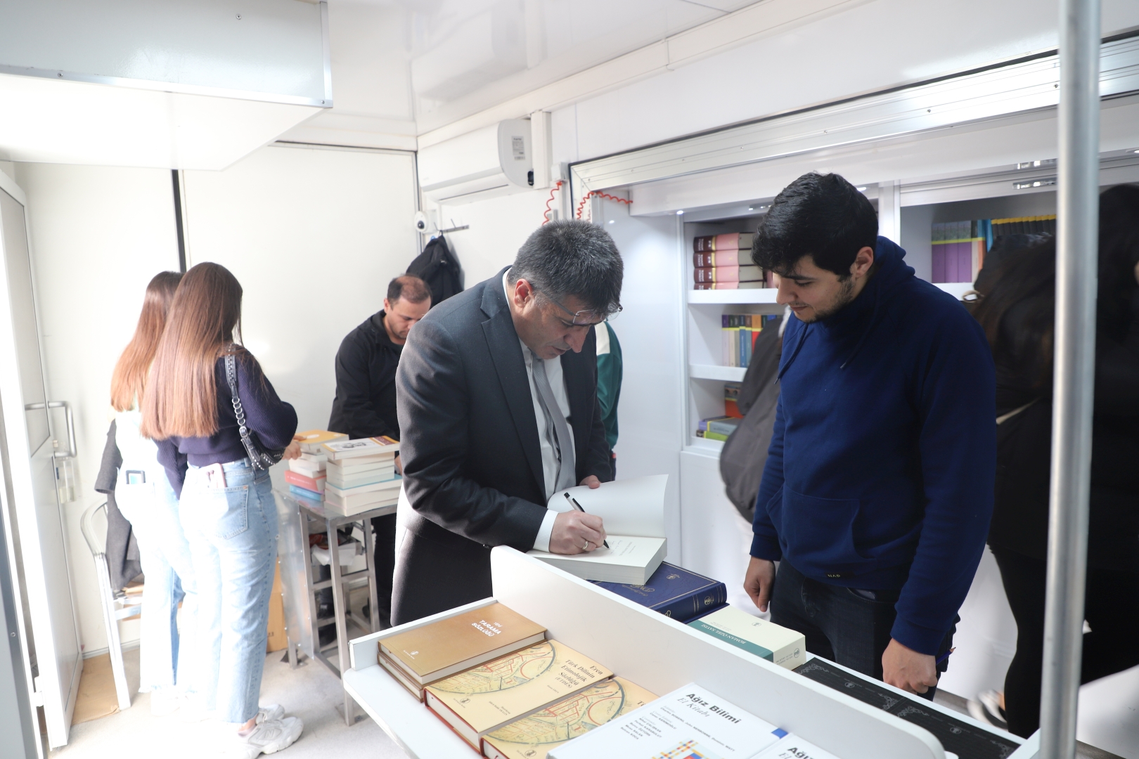 Nevşehir Hacı Bektaş Veli Üniversitesi (NEVÜ) Rektörü Prof. Dr. Semih Aktekin, Türk Dil Kurumu (TDK) Kitap Satış Aracı standını ziyaret etti.