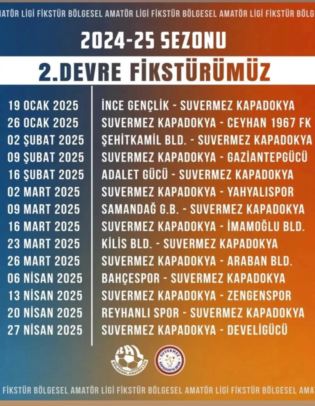 Grupta mücadele eden Suvermez Kapadokyaspor ilk yarıyı grubunda 2. olarak bitirmişti. 2.devrede kiminle oynayacağı belli olan Suvermez Kapadokyaspor 2. Devre ilk maçını 19 Ocak 2025 tarihinde İnce Gençlik spor kulübü ile oynayacak.