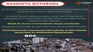 Nevşehir'deki Hastanelerimizde 3 Bin 274 Depremzede Vatandaşımız Tedavi Görmüştür