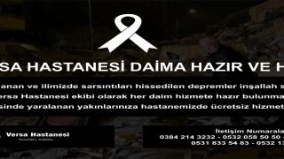 Özel Versa Hastanesi Depremde yaralananlara ücretsiz hizmet verecek