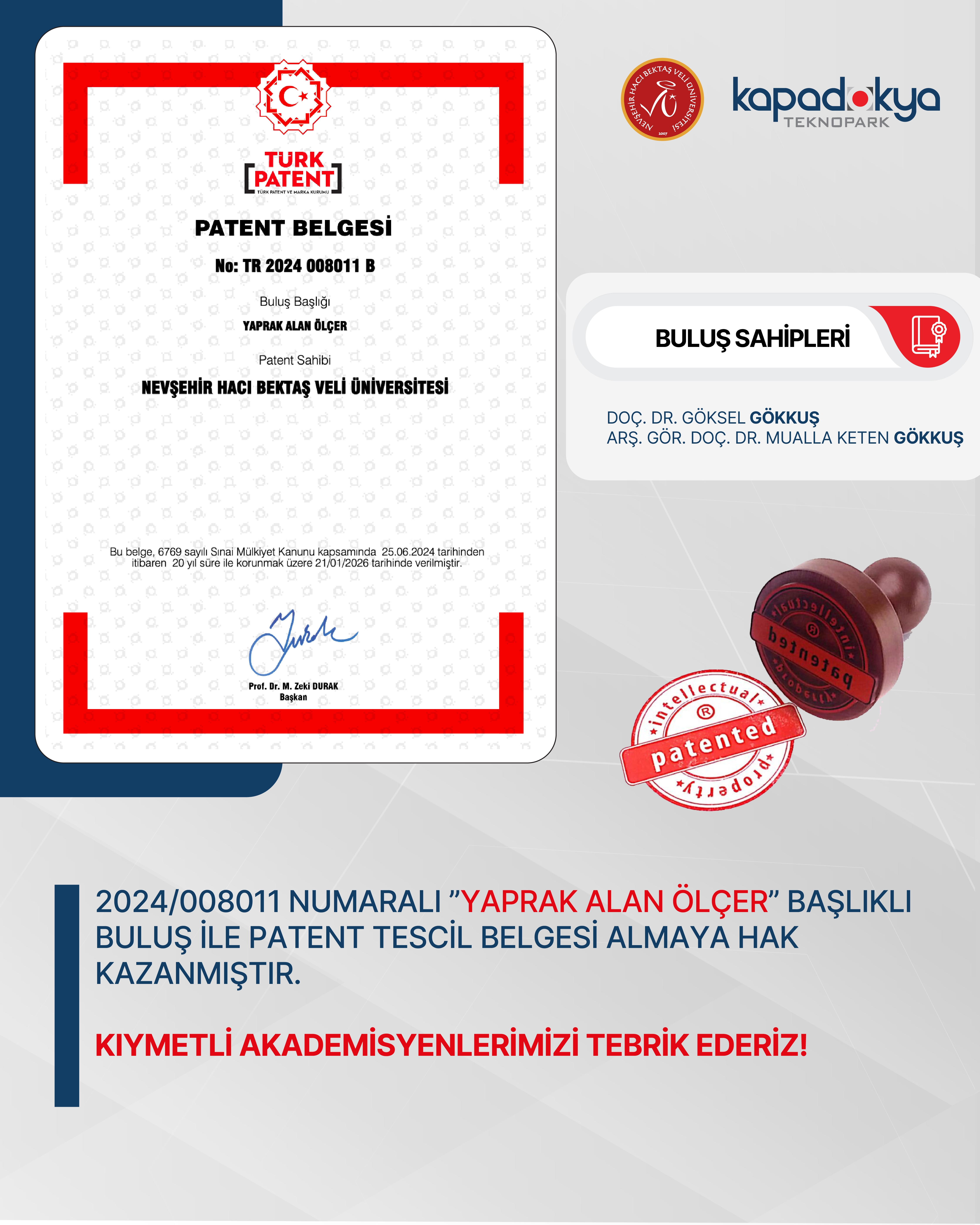 Güncel NEVÜ Öğretim Üyelerinin Patent Başarısı -