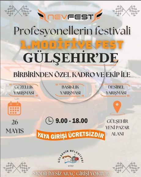 Araç modifikasyonu kültürünü desteklemek amacıyla festival düzenleyen Gülşehir Belediye Başkanı Erkan Çiftçi 26 Mayıs Pazar günü tüm gençleri ve hemşerilerini festival alalına davet etti.
