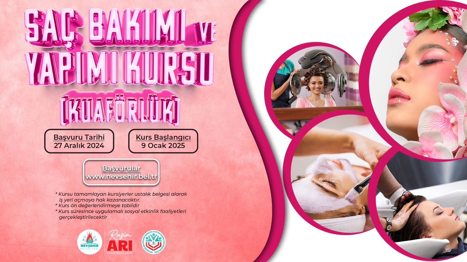 Nevşehir Belediyesi Gençlik ve Spor Hizmetleri Müdürlüğü bünyesinde "Saç Bakımı ve Yapımı (Kuaförlük) Kursu" açılacak.