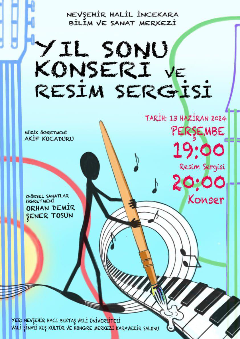 Nevşehir Halil İncekara Bilim ve Sanat Merkezi tarafından düzenlenecek olan “Yıl Sonu Konseri ve Resim Sergisi” gerçekleştirilecektir. Tüm halkımız davetlidir.