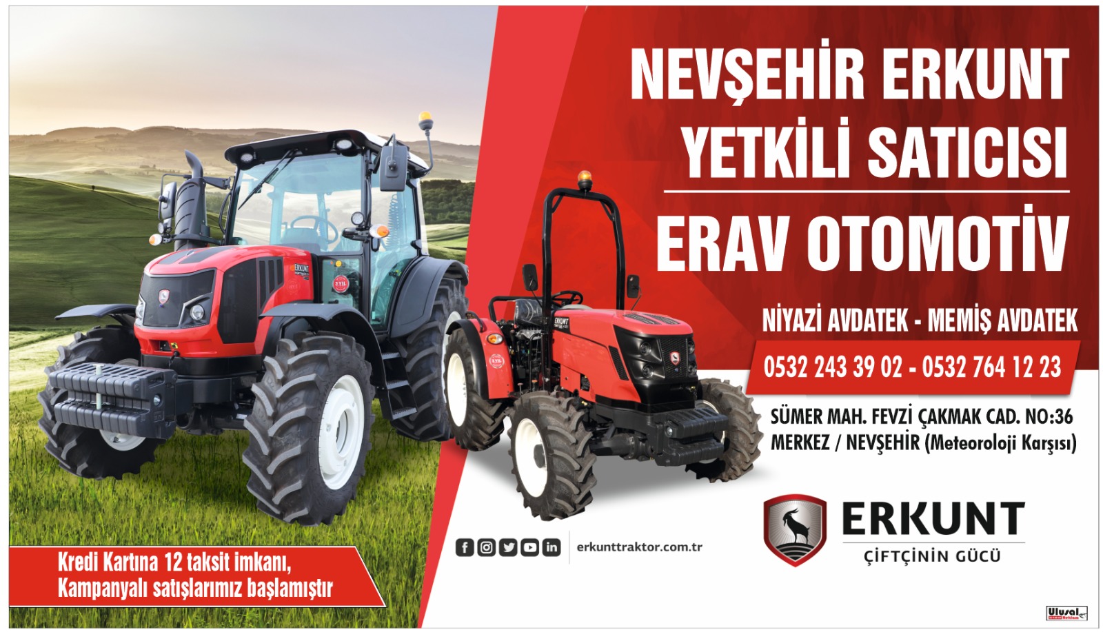 Nevşehir’de tarım sektörüne yönelik sevindirici bir gelişme yaşandı. Bölgenin en çok tercih edilen Erkunt Traktör bayisi olan ERAV Motorlu Araçlar, çiftçileri yakından ilgilendiren yeni kampanyasını duyurdu.