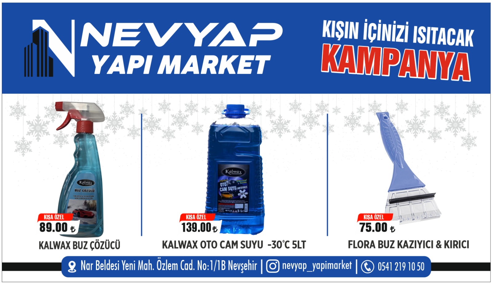 Kış mevsiminin zorlu hava koşullarına karşı hazırlıklar sürerken, NEVYAP Yapı Market vatandaşların ihtiyaçlarına yönelik özel bir kampanyayı hayata geçirdi. “Kışın İçinizi Isıtacak Kampanya” sloganıyla başlatılan indirim kapsamında, araç ve günlük kullanımda sıkça tercih edilen ürünler avantajlı fiyatlarla sunuluyor.