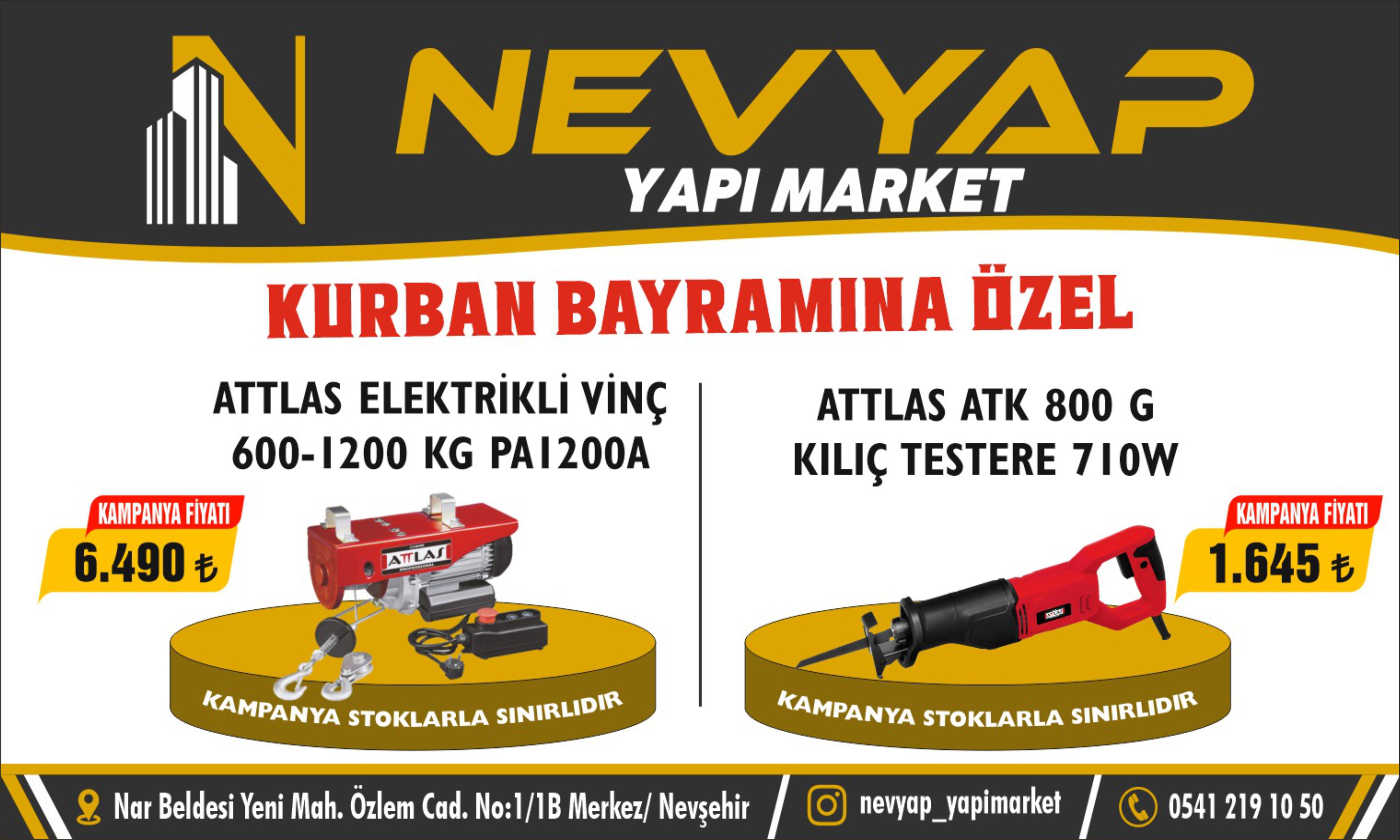 Nevşehir’in yeni yapı marketi Nevyap, Kurban Bayramı’na özel dev kampanyasıyla dikkatleri üzerine çekiyor. Kısa sürede bölge halkının ilgisini çeken Nevyap Yapı Market, bayram öncesi düzenlediği özel indirimlerle, uygun fiyat arayanları sevindiriyor.