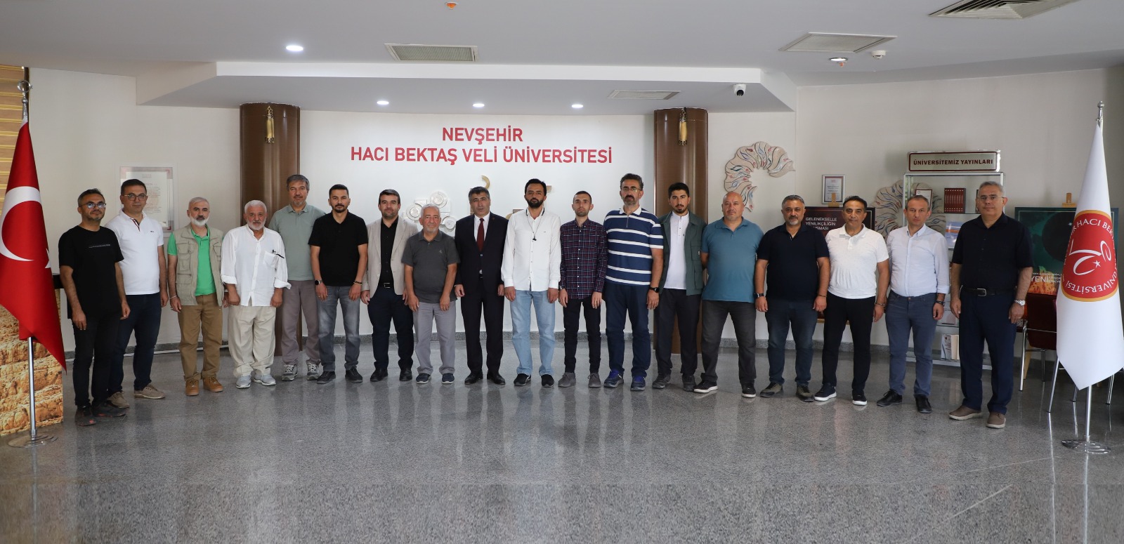 Eğitime Destek Platformu Nevşehir İl Koordinatörü Mustafa Gençtürk, Eğitim-Bir-Sen ve Memur-Sen Nevşehir Şube Başkanı Harun Öcal, İnsani Yardım Vakfı (İHH) Nevşehir İl Başkanı Tuncay Sesli, Diyanet-Sen Nevşehir Şube Başkanı Yasin Koca, Cihannüma Dayanışma ve İşbirliği Platformu Derneği Nevşehir İl Temsilcisi Uz. Dr. Fatih Yakut, Enderun Eğitim Vakfı Genel Sekreteri Mustafa Fehmi Çiftçi ve Türkiye Gençlik Vakfı (TÜGVA) Nevşehir Başkan Vekili Yusuf Olgun, beraberlerindeki yönetim kurulu üyeleriyle birlikte Rektör Prof. Dr. Semih Aktekin’i makamında ziyaret etti.