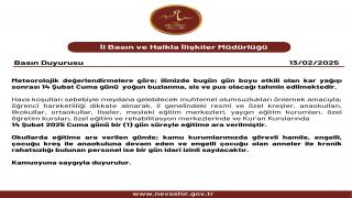 Nevşehir'de okullar Cuma günü tatil edildi.