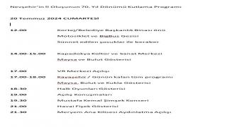 Nevşehir’in İl Oluşunun 70. Yıl Dönümü Kutlama Programı