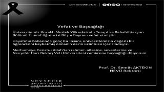 Rektör Aktekin’den Vefat Eden NEVÜ Öğrencisi Büşra Bayram İçin Taziye Mesajı