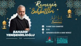 NEVŞEHİR BELEDİYESİ RAMAZAN SOHBETLERİ’NİN KONUĞU ÜNLÜ YAZAR BAHADIR YENİŞEHİRLİOĞLU OLACAK