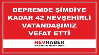 Depremde Şimdiye Kadar 42 Nevşehirli Vatandaşımız Vefat Etti