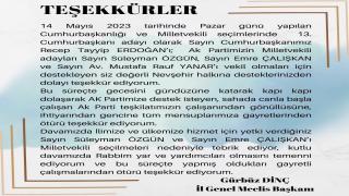 Gürbüz Dinç'ten Nevşehirli hemşerilerine Teşekkür açıklaması
