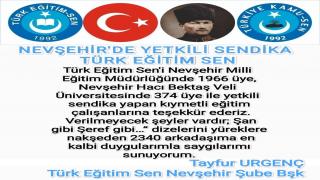 TÜRK EĞİTİM SEN NEVŞEHİR ŞUBE BAŞKANI TAYFUR URGENÇ; DEVLETİ EBED MÜDDET!