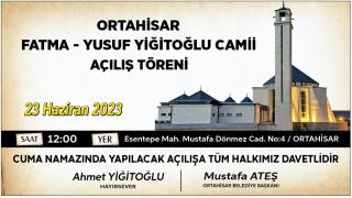 Ortahisar'da Fatma-Yusuf Yiğitoğlu Camii açılışı yapılacak